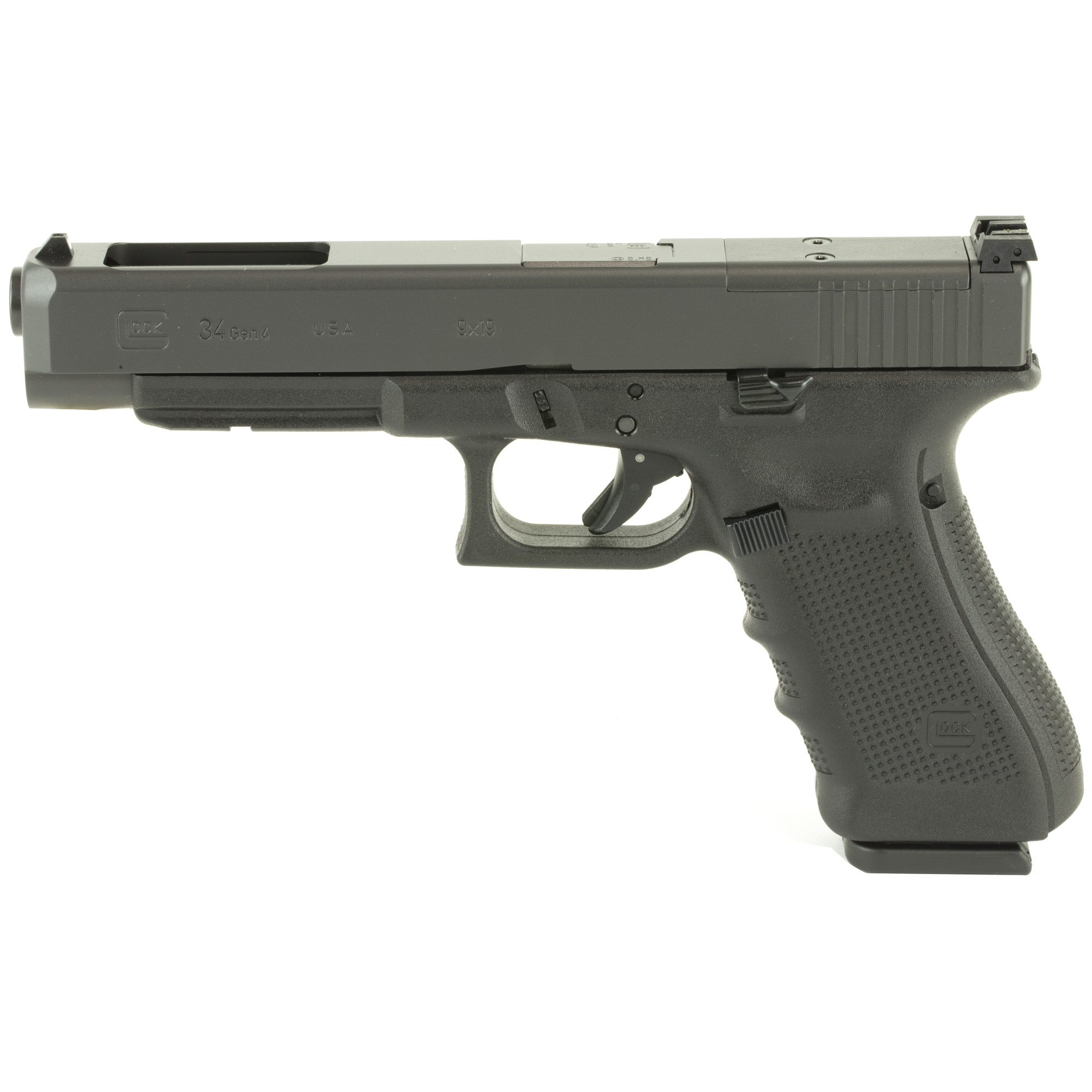 The GLOCK 34 Gen 4 MOS, in 9×19, introduces revolutionary design changes to the “Tactical/ Practical” GLOCK designed to be the same overall length as the Government Model 1911 pistols. The Modular Back Strap design lets you instantly customize its grip to adapt to an individual shooter’s hand size. The surface of the frame employs the new scientifically designed, real-world-tested, Gen 4 rough textured technology. Internally, the new GLOCK dual recoil spring assembly substantially increases the life of the system. A reversible enlarged magazine catch, changeable in seconds, accommodates left or right-handed operators. MOS configuration.