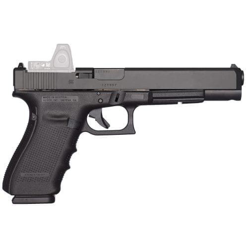 The Glock 40 Gen 4 MOS 10mm is chambered in 10mm and combines a full 6-inch barrel for an improved velocity with a magazine capacity of 15 rounds. The Glock 40 Gen 4 MOS 10mm is a powerful yet easily carried pistol; perfect for the outdoors person, hunter and sport shooter. It is designed to give the handgun hunter the ultimate choice in semi-automatic gaming pistol and has proven to be more than capable of taking down game such as Whitetail Deer, Russian Boar and even Feral Hogs.